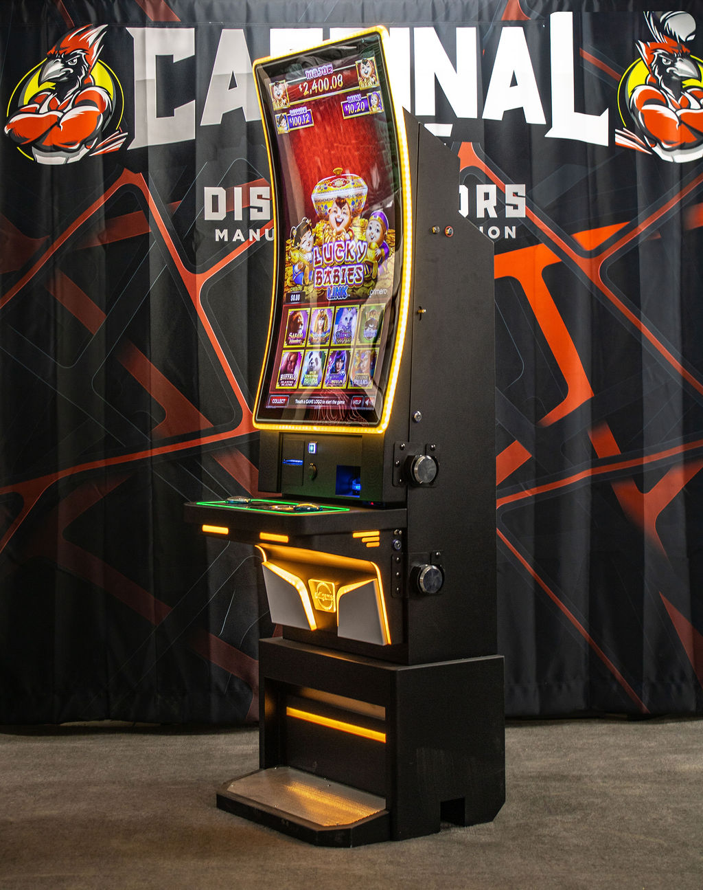43” Curved Screen Metal Cabinet designed as a board-ready solution for high-traffic gaming environments. This cabinet does not include a game board, bill acceptor, or printer, allowing operators to select peripherals via the drop-down menu. Featuring a heavy-gauge steel cabinet with durable powder-coated finish, a curved 43” high-resolution touchscreen display, full-color LED surround, amplified audio, and premium security features. Ergonomically designed at the proper height for standard bar seating to reduce player fatigue. All LED lighting is easily controlled via Bluetooth app. This cabinet does not include a game board, bill acceptor, or printer. Dimensions: 26.5” W × 26” D × 82” H.