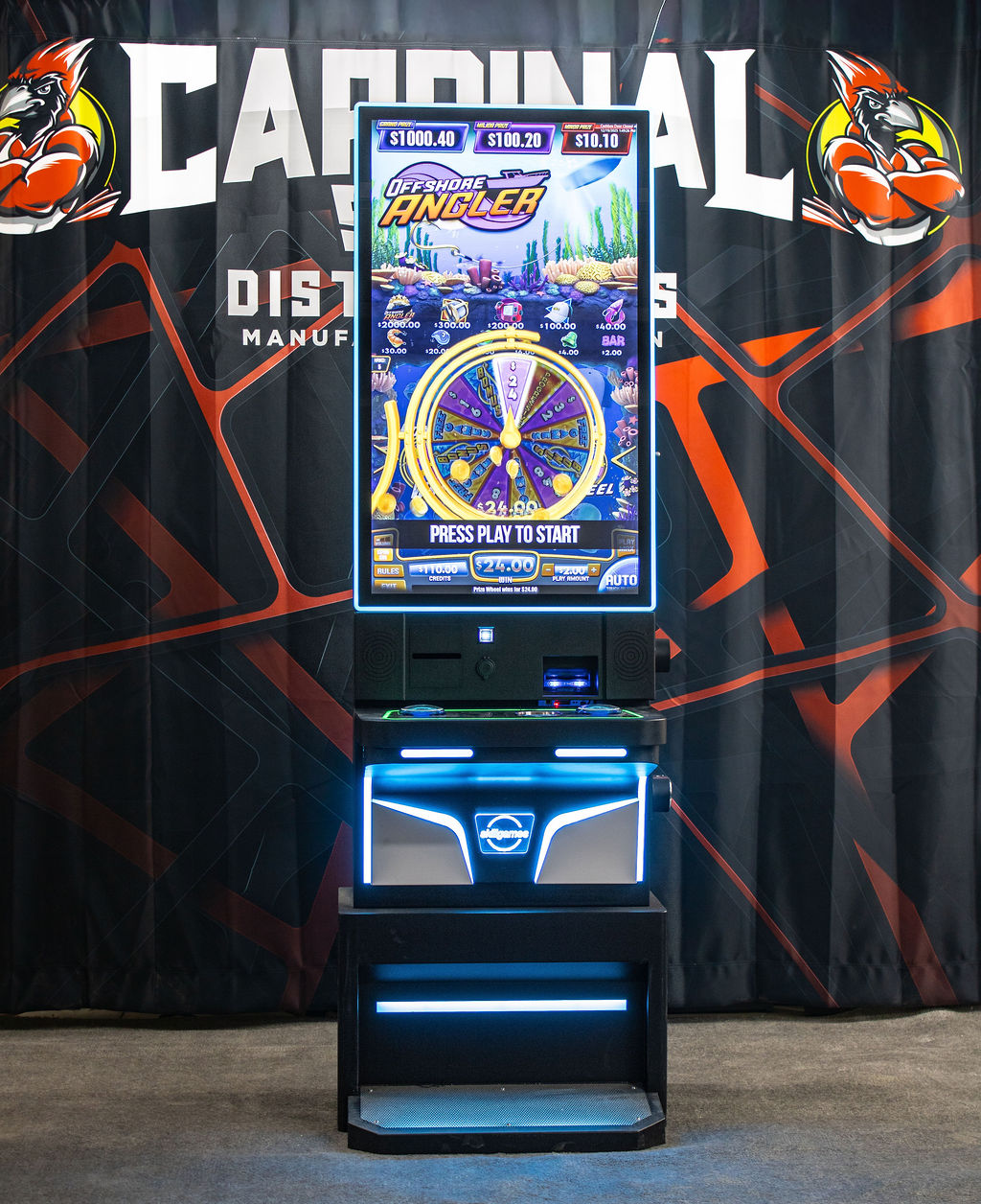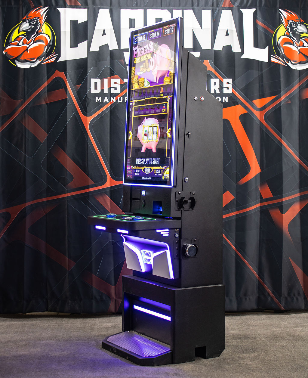 43” Flat Screen Metal Cabinet designed as a board-ready solution with no game board included. Built from heavy-gauge steel with a durable powder-coated finish, this cabinet features a 43” flat Cardinal Displays high-resolution touchscreen monitor with full-color LED surround. Designed for comfort at standard bar height, it includes wireless and USB charging ports, stainless steel cup holder, amplified speakers, dual puck locks, and a locking validator vault door. Supports VGA and HDMI inputs, multiple operating systems, and Bluetooth-controlled LED lighting. This cabinet does not include a game board, bill acceptor, or printer. Dimensions: 80.5″ H × 26.5″ W × 26″ D.